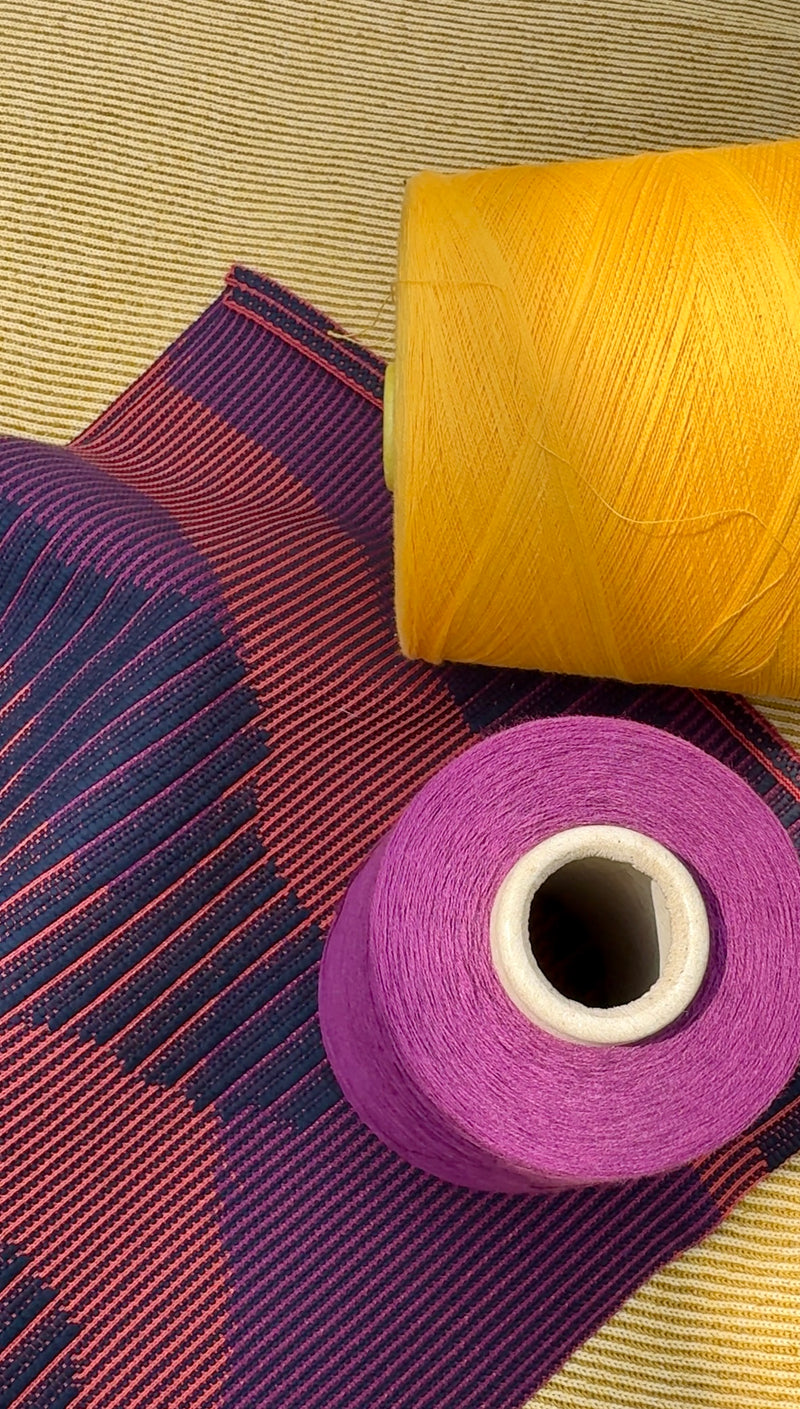 All textiles are produced in our studio in Berlin. Working from one place allows us to oversee every step of the process, from choosing the yarns to finishing each piece. This hands-on approach ensures consistency, care, and a close connection between design and making.