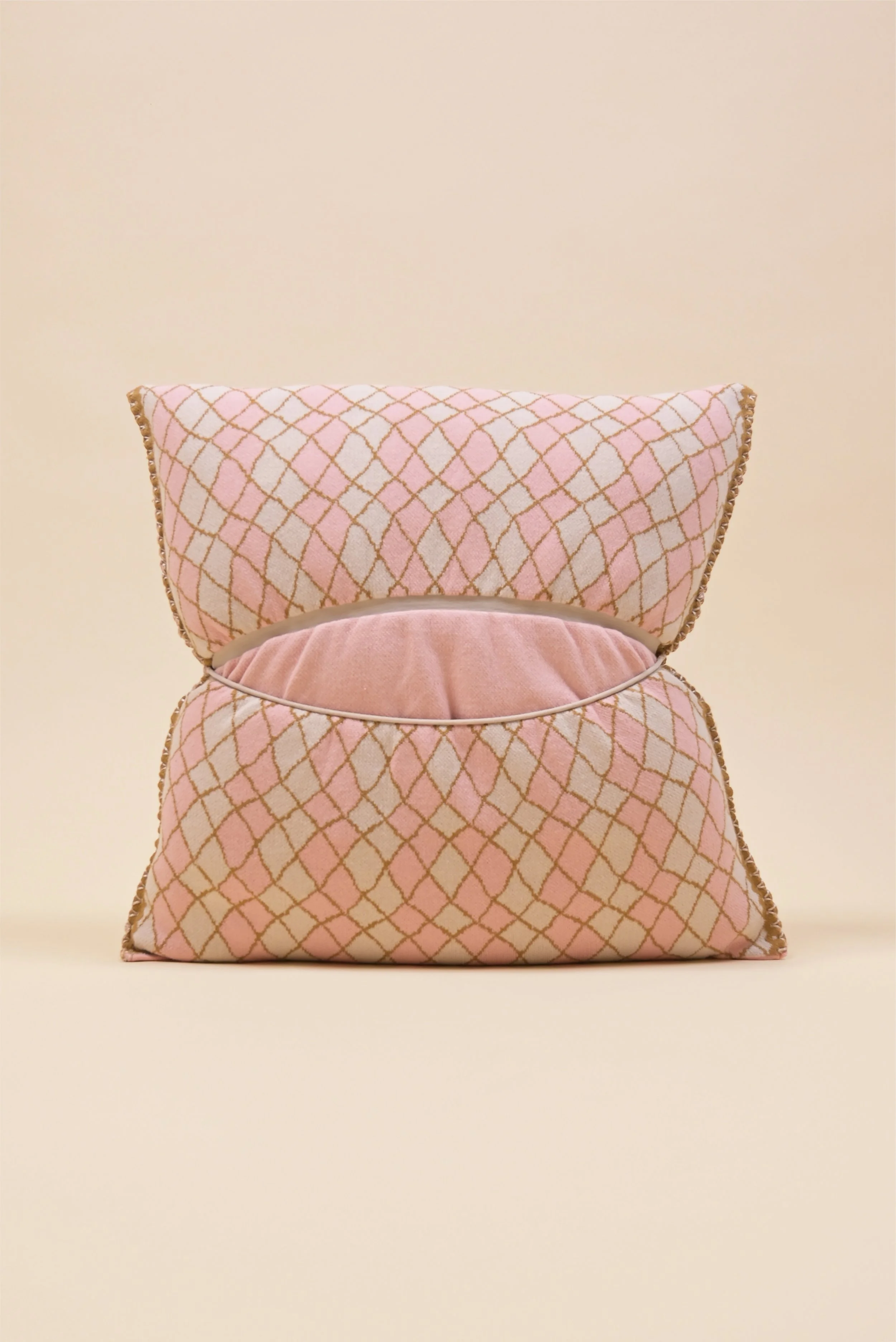 Soft, breathable, and designed to move effortlessly between seasons, this knitted blanket is made from a luxurious blend of merino wool and organic cotton. The graphic pattern plays with geometry in four tonal shades that blend into one another—adding texture and interest without overwhelming a space. It’s warm enough for cooler evenings, yet light enough for summer use, making it a versatile layer for any room.